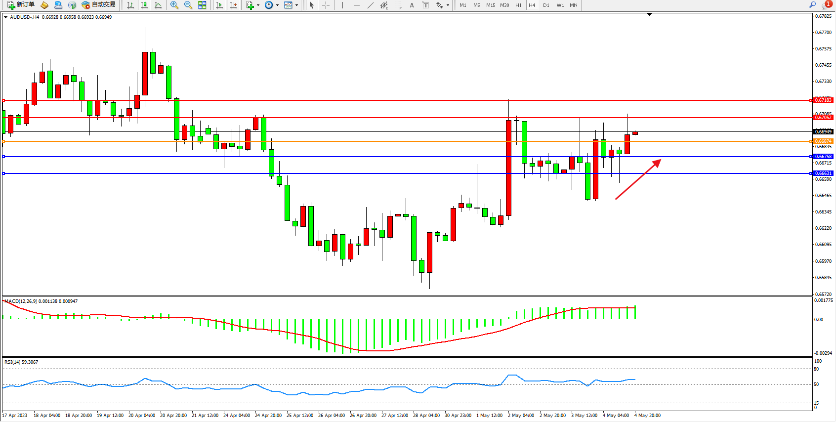 交易策略:0.66874上方看涨,目标0.67052  0.67183